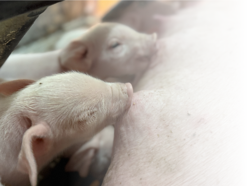 生まれたての頃は母豚のミルクをたっぷりと必要とします。そのため私たちは丁寧に見守り健やかな成長をサポートしていきます。